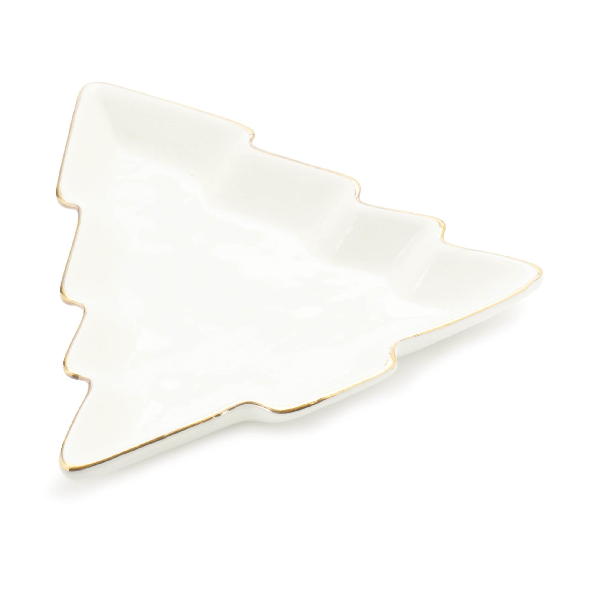 Add a touch of elegance to your holiday decor with this Ceramic Pine Tree Trinket Dish Set. Featuring wintry white tones and chic gold trim, each dish is shaped like a traditional pine tree, creating a sophisticated seasonal look. The perfect size for holding your favorite holiday trinkets or sweet treats, these dishes are a great way to entertain guests at your winter events. Sold in a set of six matching pieces, these charming dishes are both functional and decorative, adding festive flair to your holiday gatherings.
