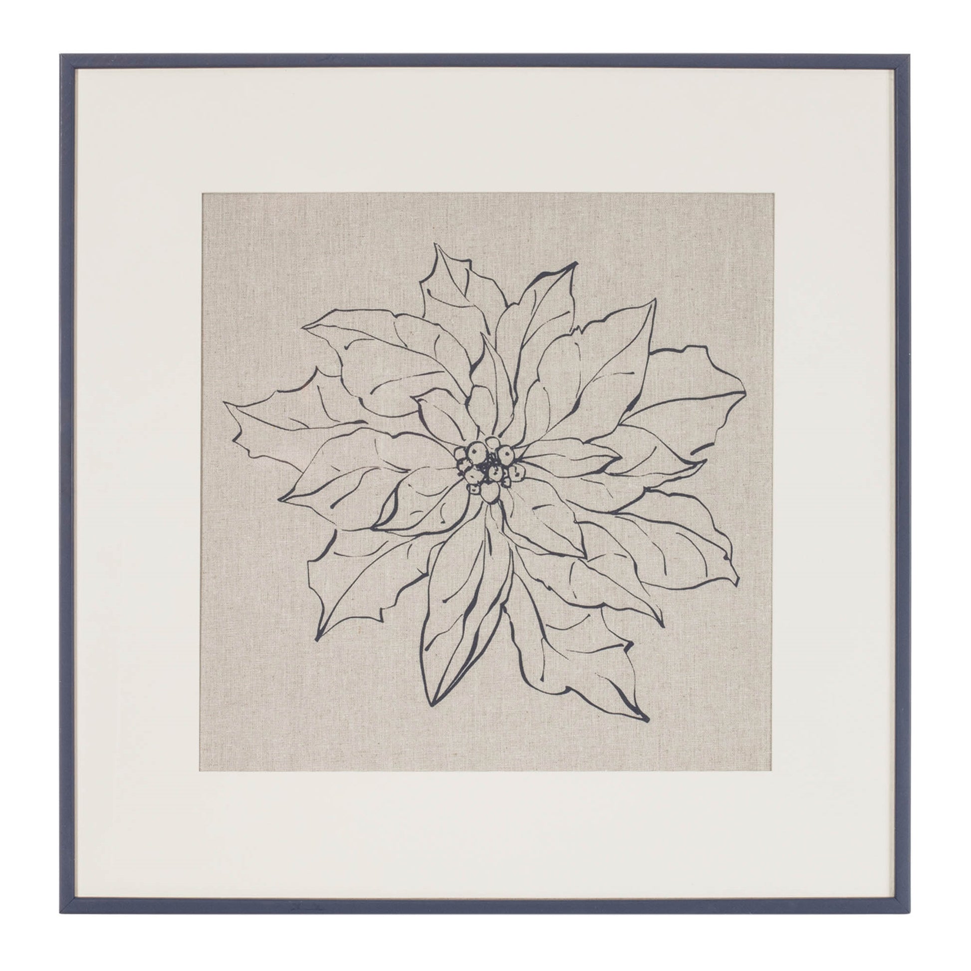 Bring a touch of modern elegance to your holiday decor with the Framed Poinsettia Print Under Glass. Featuring a delicate sketch of a poinsettia in wintry white and navy blue tones, this piece exudes a contemporary yet classic charm. The artwork is framed in deep navy blue under glass, complemented by a crisp white matte for an added layer of sophistication. Display this stunning piece in your living room or entryway to elevate your seasonal displays, or gift it to a loved one for a timeless holiday accent.