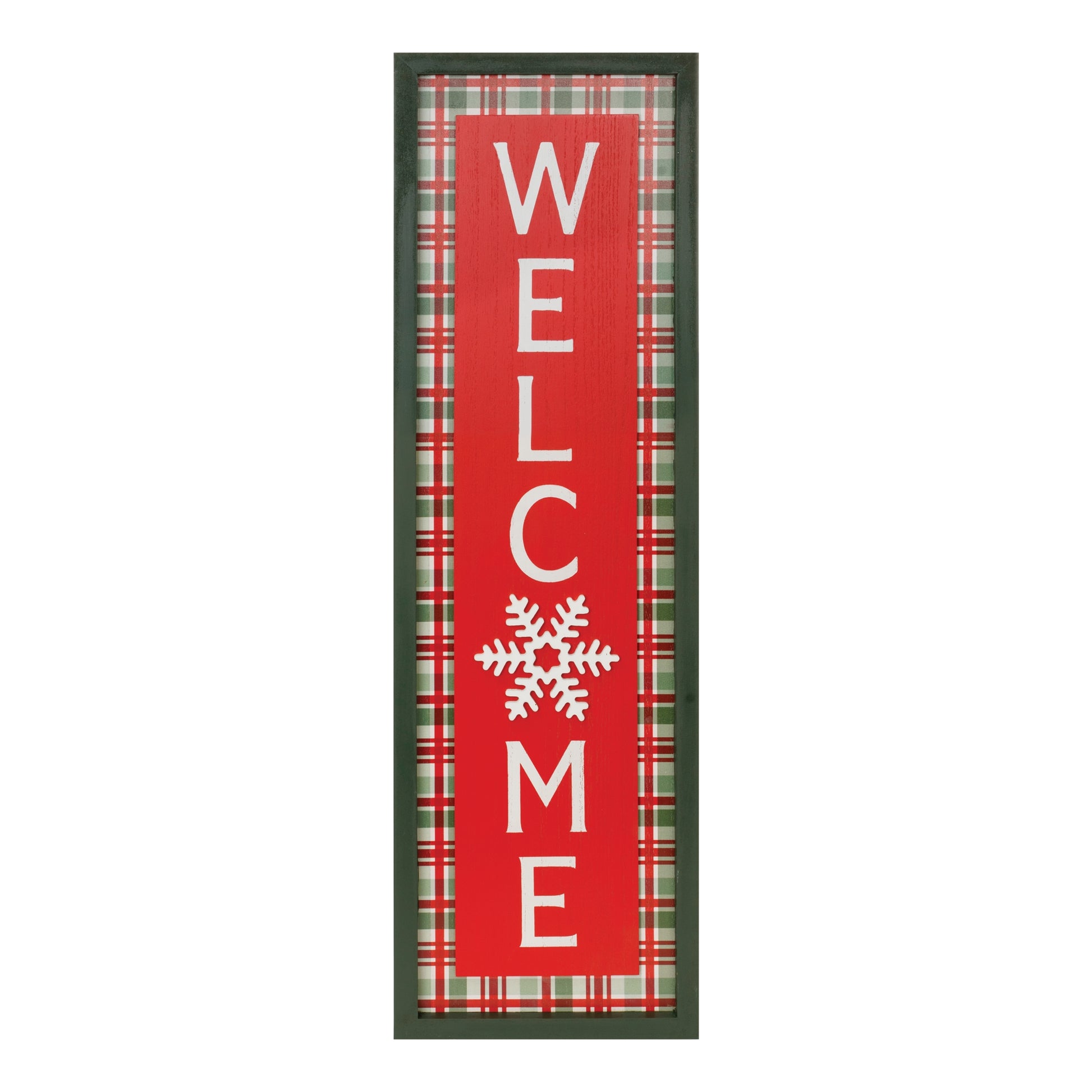Welcome the holiday season with festive cheer! This Framed Winter Welcome Sign, crafted from durable MDF wood, brings warmth and charm to your front porch or entryway. Featuring rich red and white tones, traditional plaid trim, and a beautiful snowflake accent, it's the perfect way to greet your guests. Make your home feel extra special this Christmas with this charming sign – a delightful addition to your indoor holiday decor!
