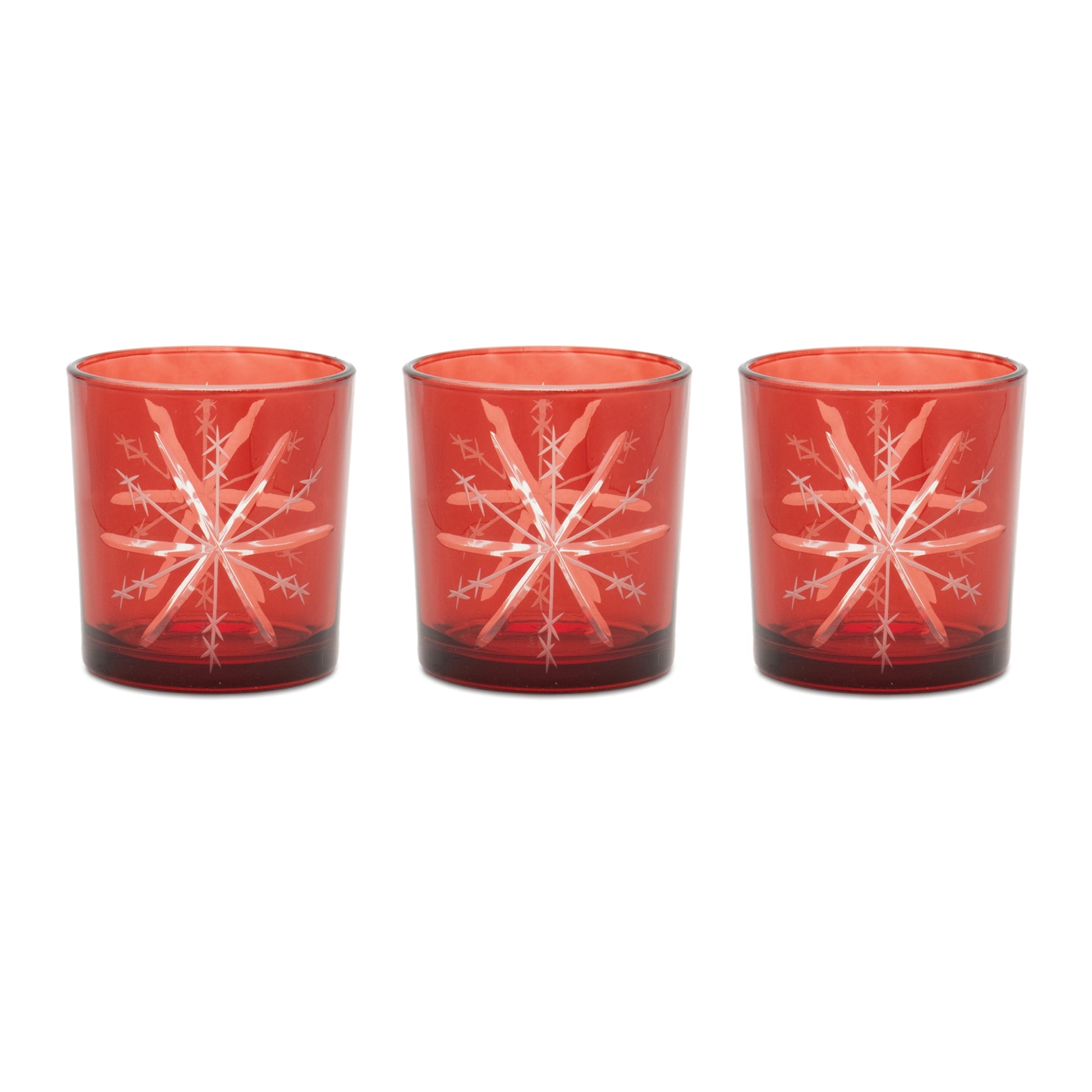 Add a festive touch to your holiday decor with the Glass Snowflake Votive Holder Set. Featuring bright red and white tones, these holders showcase a charming snowflake design that captures the spirit of the season. The chic clear glass finish allows the glow of your candles to shine through, creating a cozy atmosphere for any winter celebration. Perfect for small votive or tealight candles, these holders are an ideal addition to your Christmas table or mantle. Measures: 2.75 x 2.75 x 3
