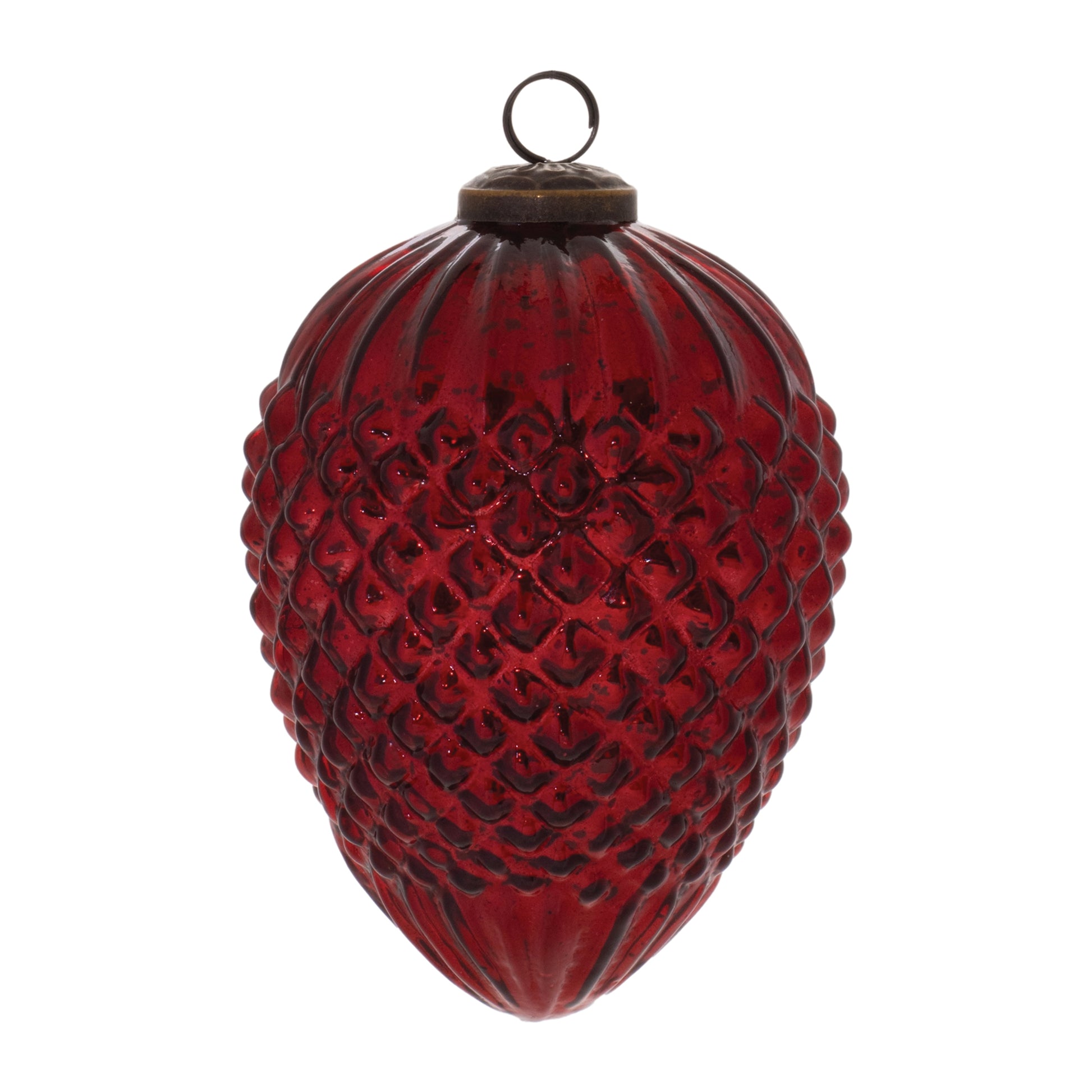 Bring a touch of modern elegance to your holiday decor with the Hobnail Glass Cone Ornament, featuring a deep burgundy red tone and a trendy hobnail texture. The modern cone shape adds a unique twist to your seasonal displays, while the rustic brass ornament cap gives it a vintage-inspired finish. Sold in a set of two matching pieces, these ornaments are perfect for showcasing on your Christmas tree, adding flair to your front door wreath, or enhancing your mantle garland for a bold, festive look.