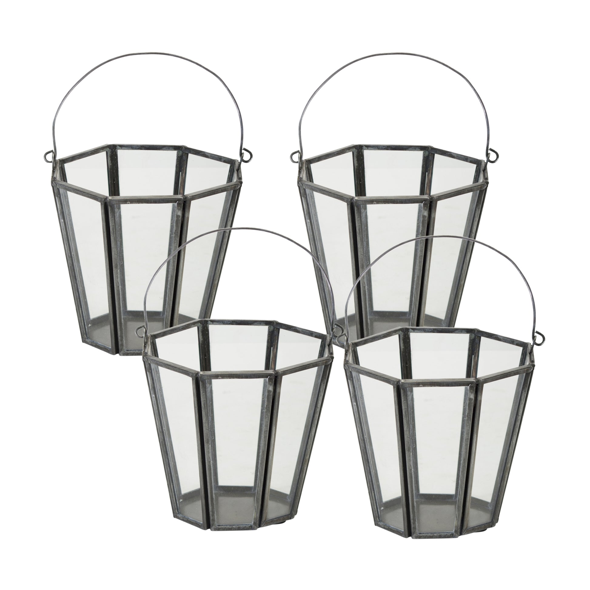 Elevate your space with these charming Iron Candle Holder Buckets, combining timeless style with a modern touch. The multi-paneled design features clear glass, complemented by a classic silver finish, making it the perfect accent for any room. Whether you're using real wax or LED candles, these holders will create a warm, inviting ambiance indoors or in covered outdoor settings. Add them to your home decor for a versatile and elegant lighting solution. Sold in a set of four matching pieces to make a statement in your home. Measures 4.75 x 4.75 x 4.75"