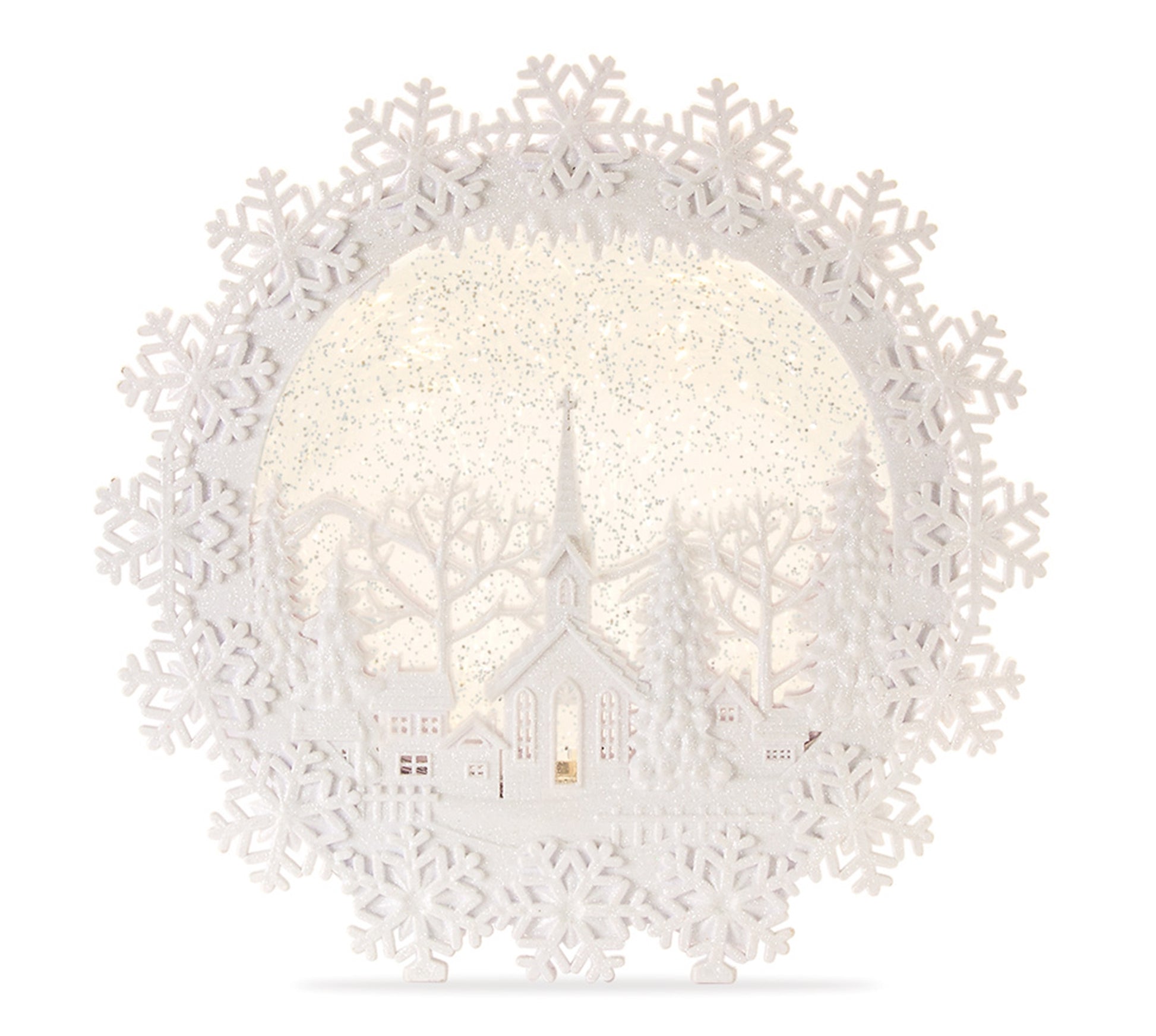 Add a touch of traditional charm to your holiday decor with this LED Church Scene Snow Globe. Standing 12.25 inches tall, this beautifully crafted snow globe features a serene church scene set in a sparkling, lighted globe. Perfect for bringing a warm, festive glow to your home, the piece includes a convenient 6-hour timer function for easy use. Whether powered by 3 AA batteries (not included) or USB cord (included), this elegant decoration will enhance your Christmas celebrations for years to come.