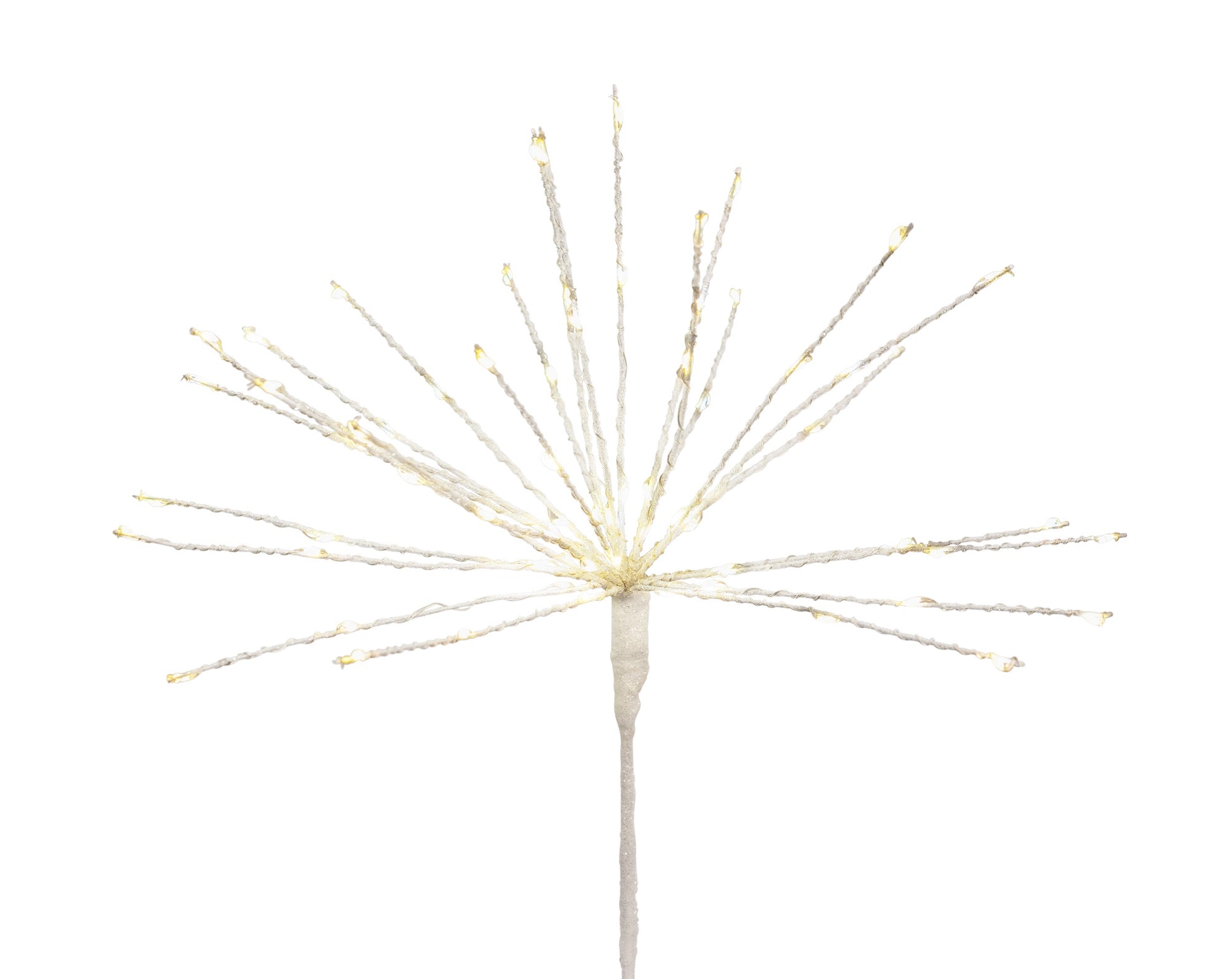 Add a dazzling touch to your holiday tree with the LED Starburst Tree Topper. This set of two pieces features 75 mini white LED lights, offering a brilliant glow that brings festive cheer to your home. Standing 23.5" tall and 15.5" wide, it's the perfect finishing accent to elevate your Christmas tree decor. With an easy-to-use UL plug and a 63" cord, setup is a breeze. Crafted from durable plastic, this topper is designed for indoor use, ensuring a magical holiday display year after year.