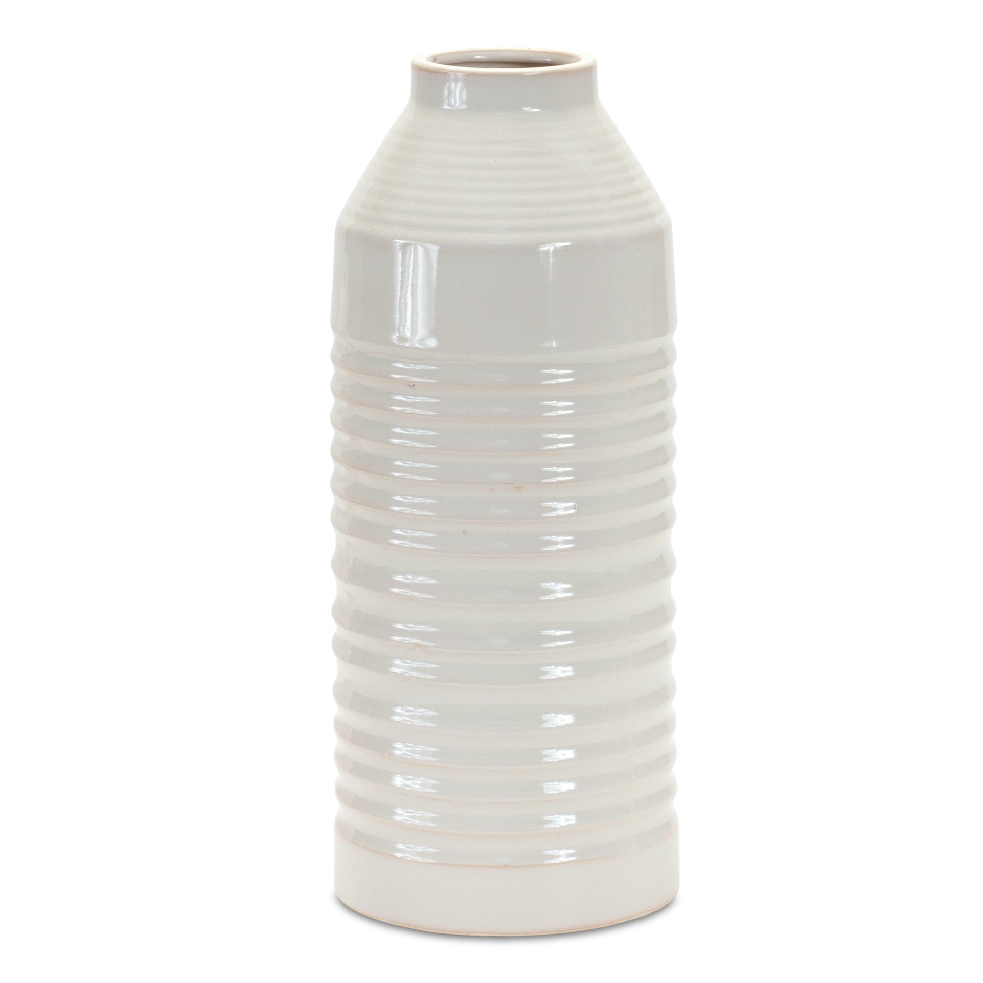 Elevate your home decor with the stylish and timeless design of the Modern Ribbed Terra Cotta Vase. Standing at 14 inches tall, this white vase brings sophistication and elegance to any tabletop. Crafted from durable clay, its neutral tone and textured ribbed pattern make it the perfect vessel to showcase fresh florals or dried botanicals. Whether placed indoors or in a covered outdoor setting, this vase complements a variety of decor styles, making it a versatile addition to your home.