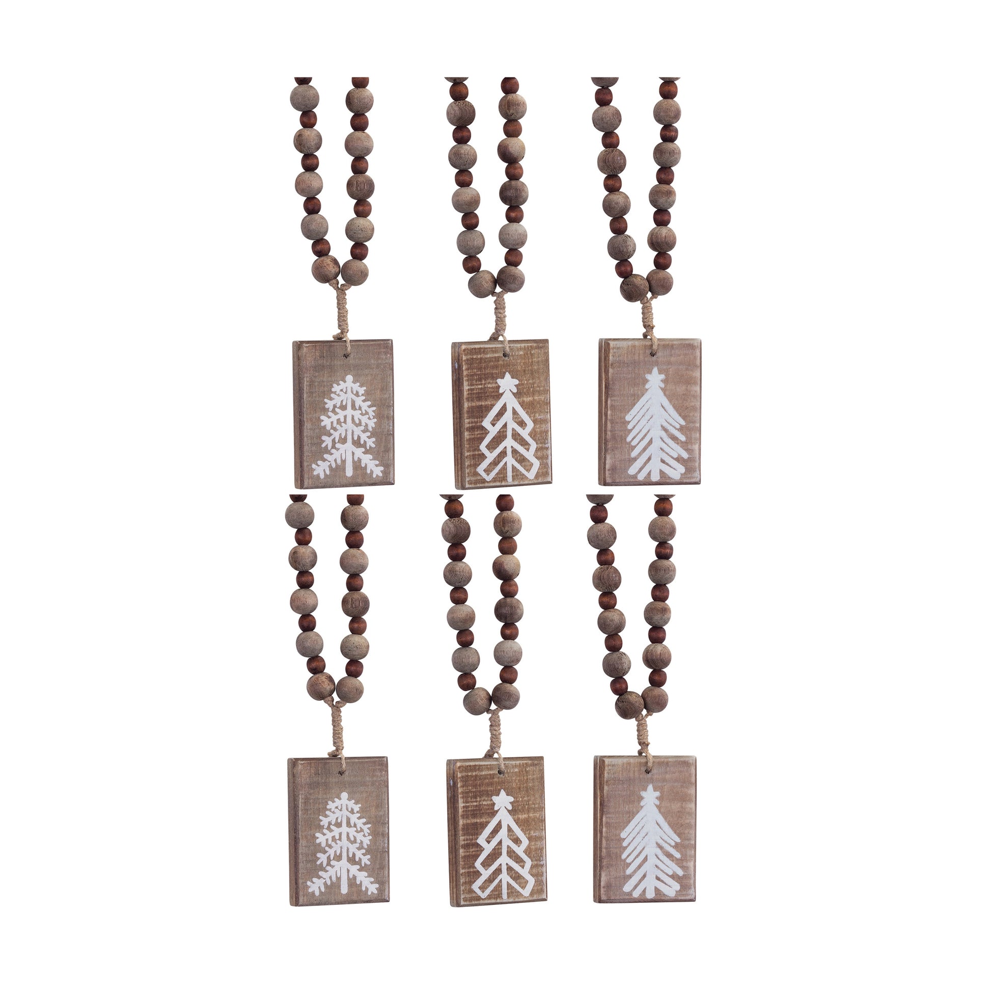 Rustic Wood Tree Tag Ornament with Beaded Hanger (Set of 6)